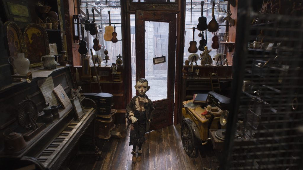 The creators of The Girl Who Cried Pearls adopted a scavenger’s mindset, transforming discarded objects into set materials. Steel bristles shed from street-cleaning trucks became structural supports, while rain-soaked cardboard, rotten wood and empty pill bottles found new life in the miniature world they built. Tiny toys and clocks from a dollhouse were used to fill up a pawn-shop interior, and items from past films were also recycled. Eagle-eyed viewers might spot the record player from Madame Tutli-Putli and the piano from the VR experience Gymnasia. This inventive reuse added texture and authenticity to the set’s visual language.